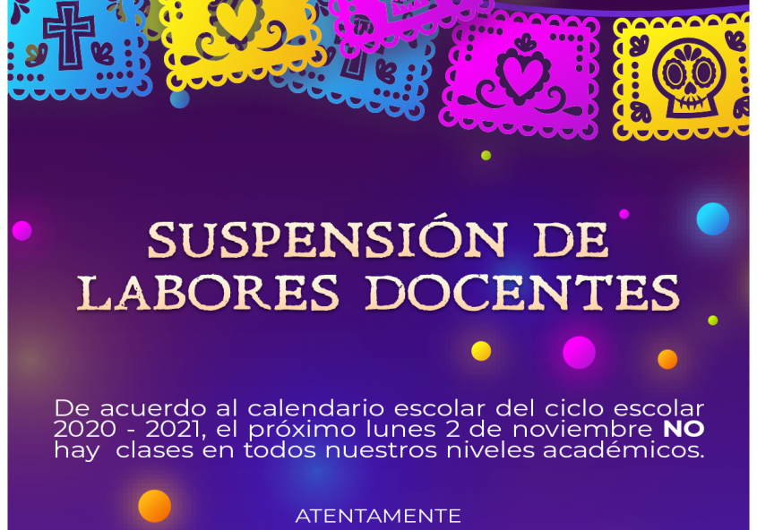 Estimada Familia Boston. Por este medio les informamos que de acuerdo al calendario oficial del ciclo escolar 2020 – 2021, el día lunes 2 de noviembre hay suspensión de labores docentes. Igualmente les informamos que el día lunes 2 de noviembre nos encontraremos laborando en las oficinas administrativas de cada plantel en horario de 8:00…