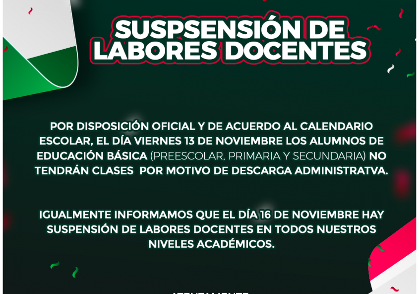 Apreciable Familia Boston. Les informamos que por disposición oficial y de acuerdo al calendario escolar del ciclo 2020 – 2021, el día viernes 13 de noviembre no tendremos clases en los niveles preescolar, primaria y secundaria, debido a la descarga administrativa que tendrán los docentes. De igual manera informamos que el día lunes 16 de…